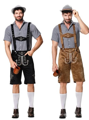 Men’S Classic Sets German Traditional Festival Clothing Checkered Shirt Bib Shorts With Hanging Hat Three Piece Set –