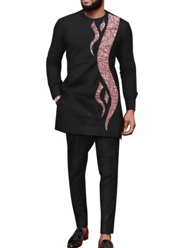 New Kaftan Africa Full Men’s suit Long sleeve solid color top pants suit Elegant business party wedding men’s suit